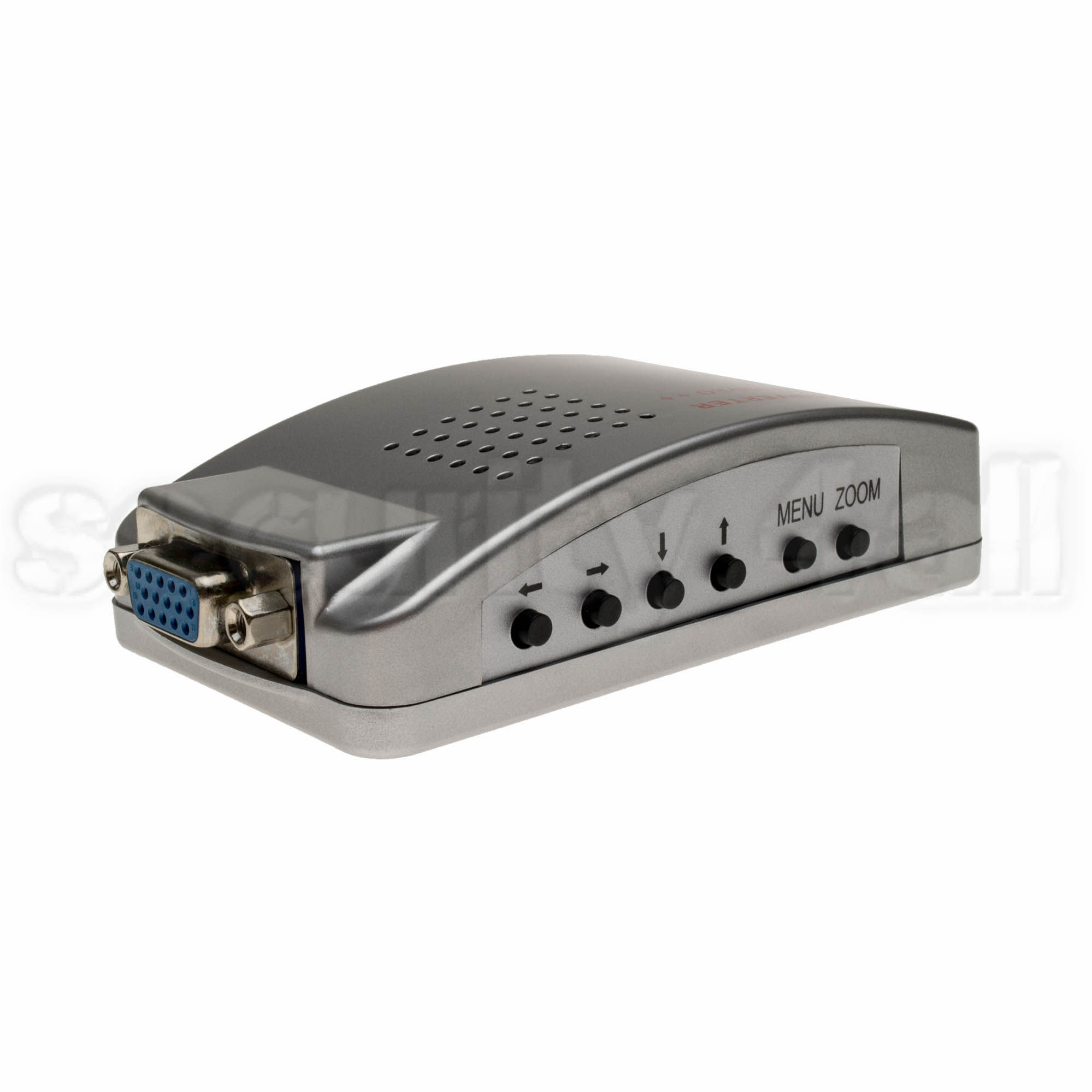 Convertor VGA la video cu OSD, reglaje luminozitate, contrast, culoare, rezolutie, 3 iesiri: video complex pe RCA, S-video, VGA, intrare VGA, alimentare prin USB de la calculator.