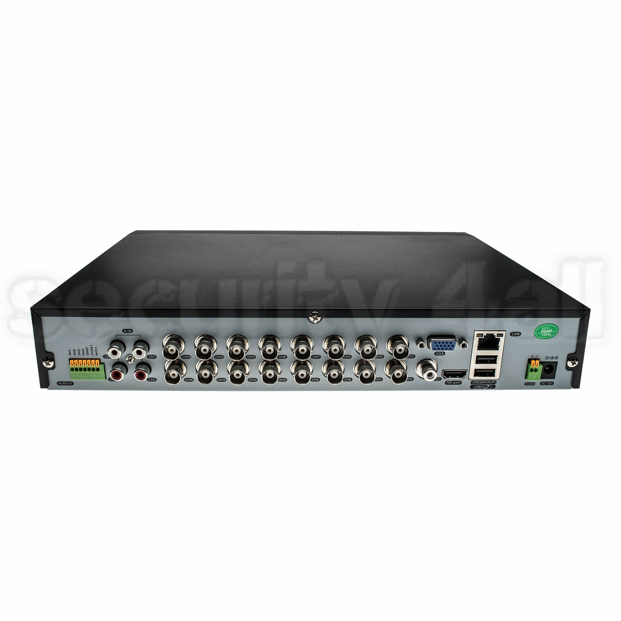 AHD/Analog/IP Tribrid HVR standalone 16 canale video, 4 canale audio, inregistrare AHD-H: 16x 1080N@25FPS, AHD-M: 16x 720P@25FPS, analog: 960H/D1 @ 25 FPS/canal, IP: 4x1080P, 1x1080P+8x720P, hibrid: 8x720P(AHD) + 8x720P(IP), protocoale ONVIF si IPNET, redare 4x 1080P/12FPS, 1 audio out, iesire VGA out, iesire HDMI Full HD 1920x1080, 2 USB, suporta 1x HDD SATA 6TB, transmite semnal UTC pentru OSD camera, RJ45 port retea / Internet, iesire RS-485 pentru PTZ, alarma 4 in 1 out, inregistrare la detectie de miscare, continua sau calendar, zoom digital, accepta stick Wi-Fi USB, mouse USB inclus, alimentator 12V/3A inclus, software monitorizare iPhone, Android, Windows, BlackBerry, dimensiuni 250x235x45 mm, solutie Hi3531 XM