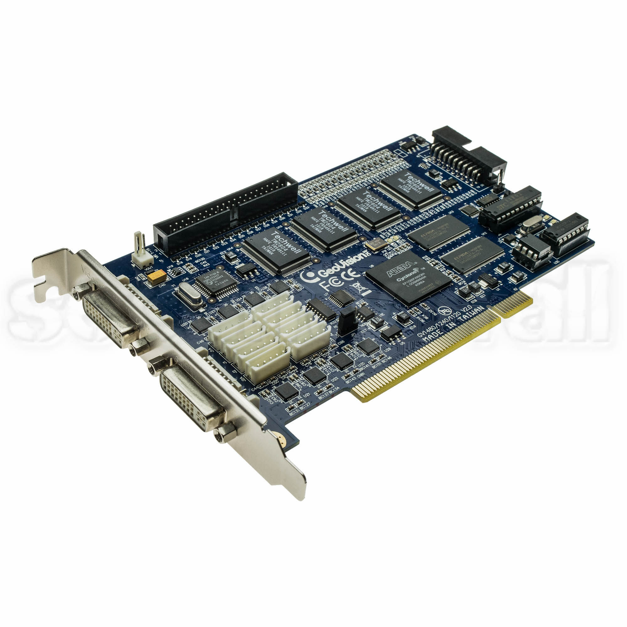 Placa de captura DVR tip GV, 16 canale video, 16 canale audio, 400 FPS/placa, rezolutie maxima 720*576, optiune wide screen, detectie miscare si analiza video complexa, compresie MPEG4, H.264, cerinte hardware P4 2.4 GHz / 1GB RAM / video 256MB, software Win 2K/XP/Server2003/Vista, versiune software Geovision System 8.3, acces de pe mobil Windows, Blackberry, iPhone, Android