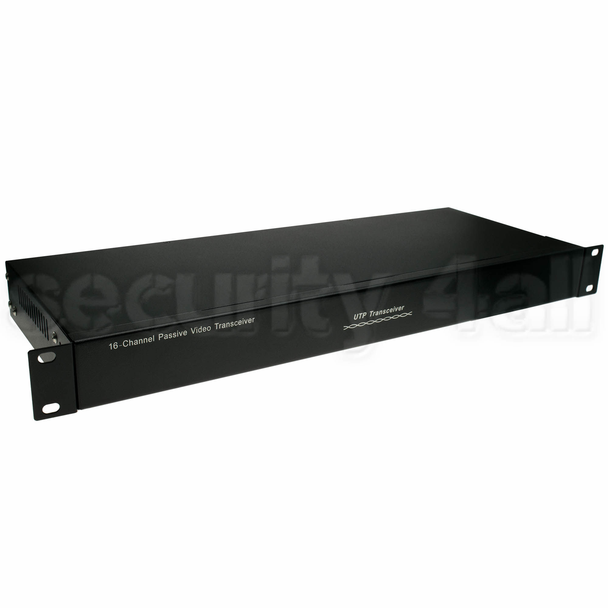 Video transceiver (balun) pasiv BNC tata la cablu UTP (24-16AWG (0.5-1.31mm, 18 ohm/100m)), distanta maxima 400/600m semnal color/alb-negru, 16 canale, borne cu surub si RJ-45 pentru UTP, BNC mama pentru coax, rackabil